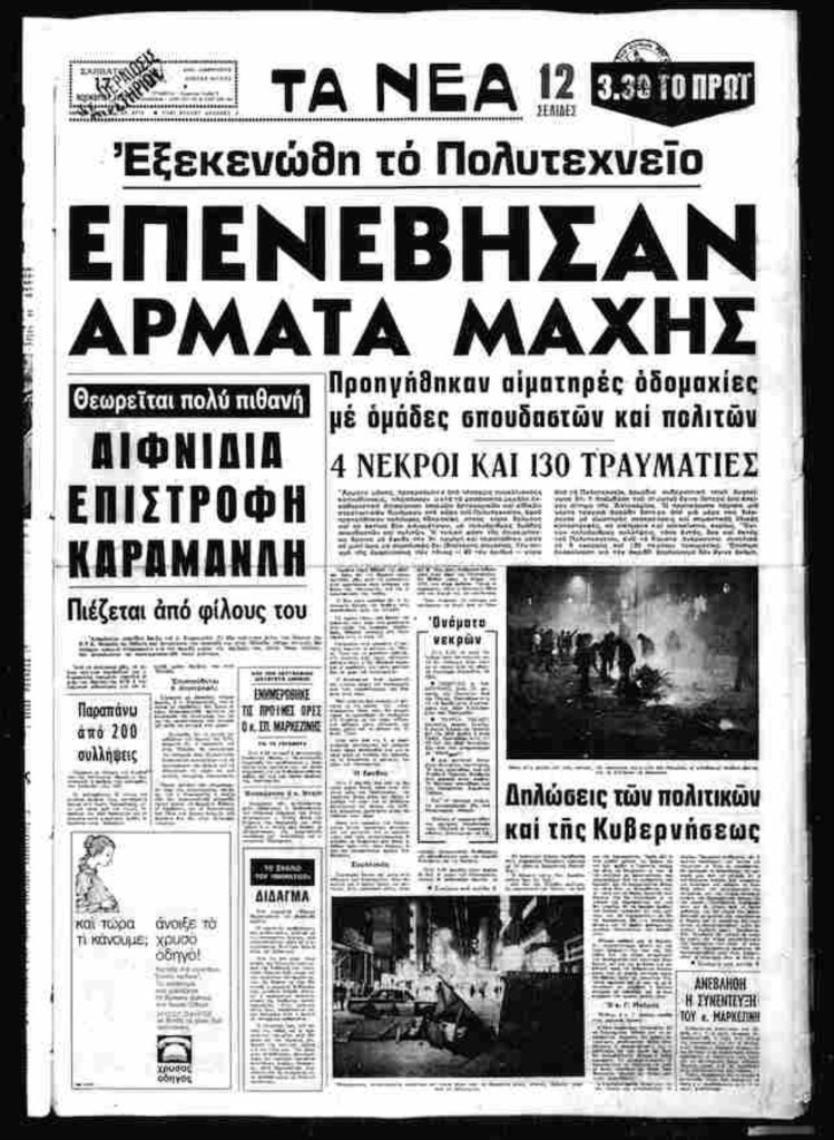 Επέτειος του Πολυτεχνείου: την ώρα που κάποιοι τιμούν τους νεκρούς, τους βασανισμένους, τους εξόριστους και τους εξεγερμένους, άλλοι νοσταλγούν το πουλί της δικτατορίας. Δεν γίναμε όλοι δημοκράτες σ’ αυτήν τη χώρα, επειδή πέρασαν 48 χρόνια… Έχουμε ακόμα δουλειά. Ίσως περισσότερη από άλλοτε.